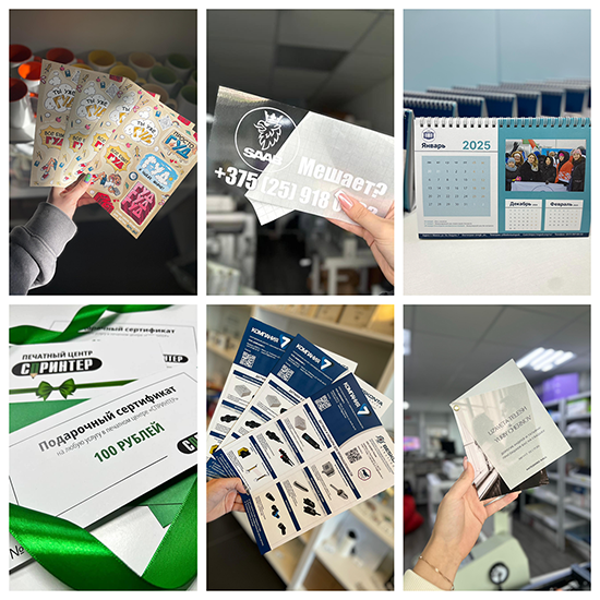 Печатный центр и фотоцентр «СПРИНТЕР» предлагает широкий спектр полиграфической продукции: от ксерокопии до баннеров. Также у нас вы можете заказать сувениры: кружки, майки, магниты и многое другое. Мы оказываем услуги копицентра, печатного центра, фотоцентра и типографии (печать) на Грушевке, Немиге (2 филиала), в Минск Мире (2 филиала), в Малиновке (2 филиала), Парке Челюскинцев, Маяке Минска (метро Восток), Независимости (метро Якуба Коласа), Уручье, Спортивной, Каменной горке, Петровщине, Площади Ленина, Пушкинской и на Институте культуры. Мы печатаем не только для клиентов из Минска, также мы отправляем заказы по всей Беларуси.