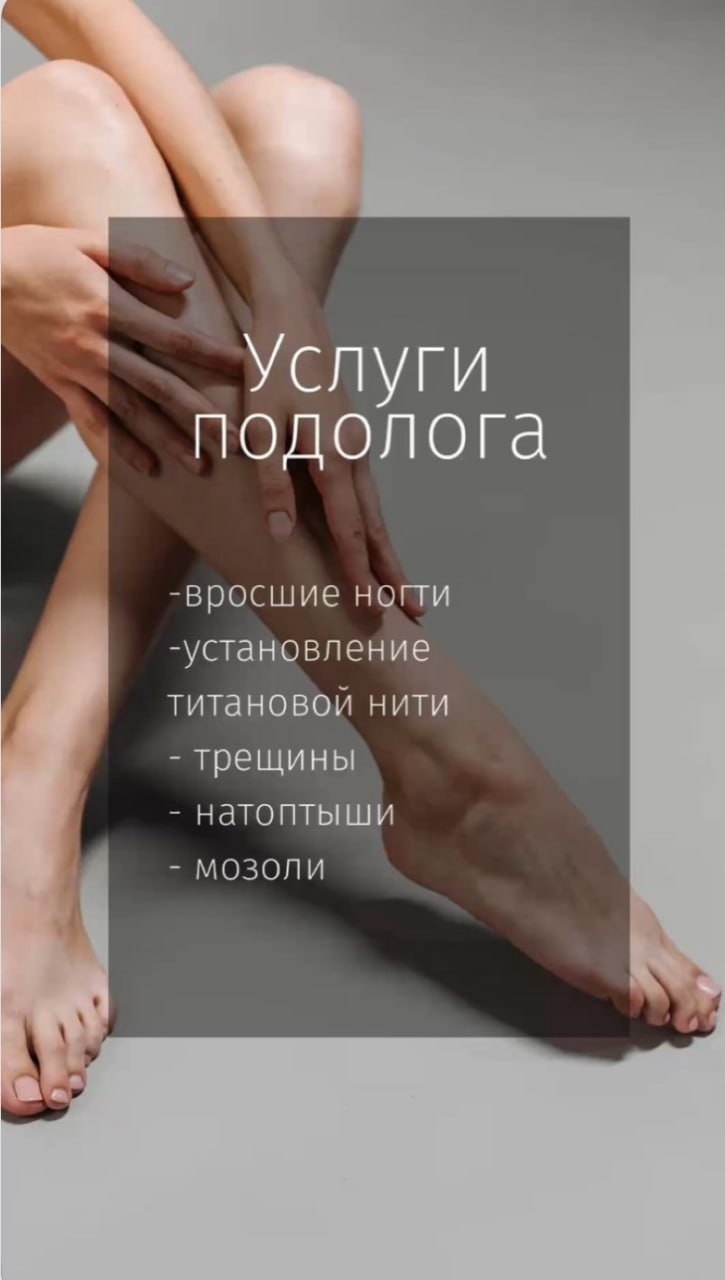 - Обработка вросшего ногтя, работа с мозолями, натоптышами, трещинами.