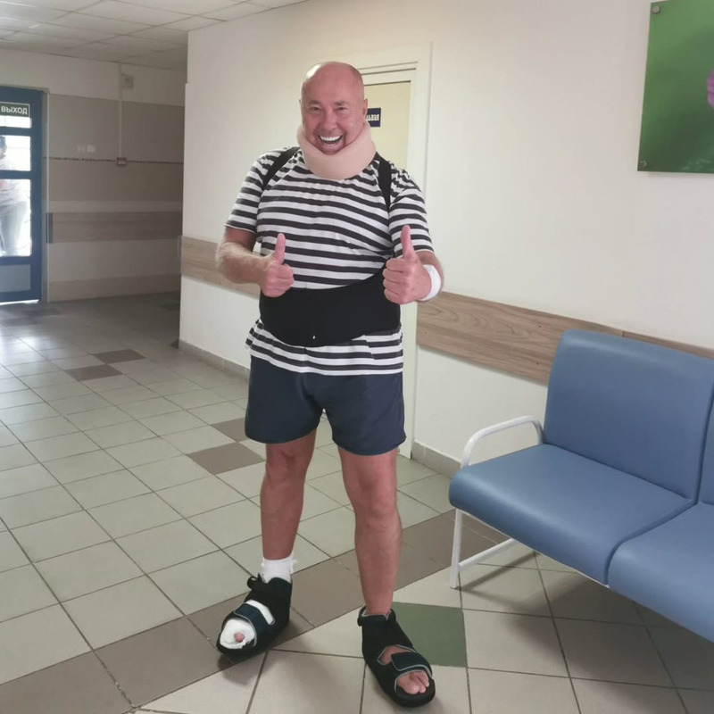 Заслуженный артист Беларуси Александр Солодуха перенес операцию. Об этом он сообщил на своей странице в Instagram, выложив фото. На снимке исполнитель стоит в шейном корсете и гипсе. При этом фирменная белоснежная улыбка никуда не делась.
