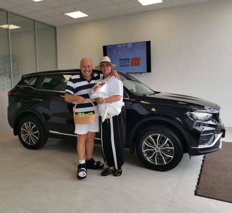 Зато чуть позже он выложил еще один кадр. Уже без шейного корсета, но в гипсе. Рядом с ним − супруга, а на заднем плане красуется черный Belgee.