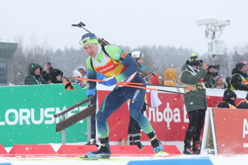 Смольский начинал гонку с третьей позиции и уже на первых двух огневых рубежах в положении лежа показал безупречную стрельбу — 10 точных выстрелов из 10 позволили ему подняться на второе место. Однако на первой стрельбе стоя лидер белорусской команды допустил две ошибки и отправился на два штрафных круга, откатившись на четвертую строчку.