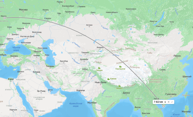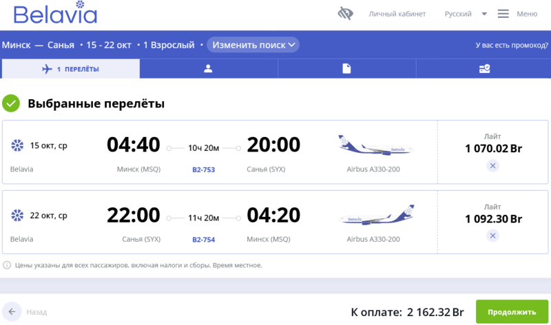 - Вылет из Минска – в 04:40, прибытие в Санью – в 20:00 (в пути 10 часов 20 минут)
