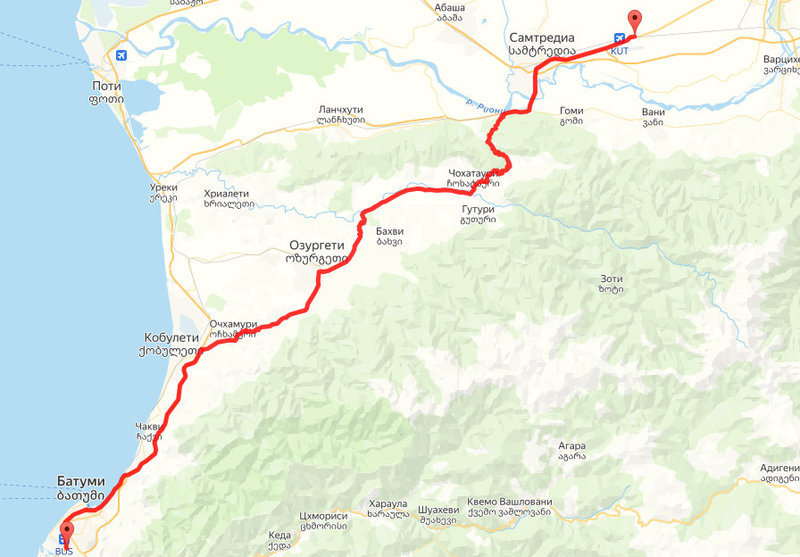 Расстояние от аэропорта Кутаиси до аэропорта Батуми (который находится в городской черте) составляет 125 километров.