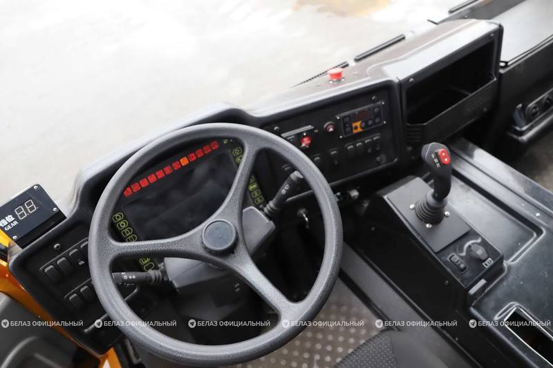 В кабине машины установили пневматически регулируемое кресло, четыре камеры для кругового видеонаблюдения, светодиодную оптику, климат-контроль и усиленную шумоизоляцию.