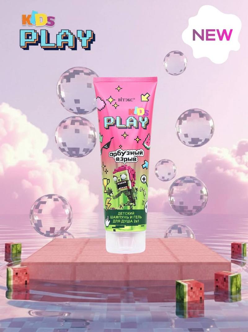 Новая коллекция носит название Kids Play, в ней четыре экземпляра с яркими запахами: арбуз, кола, банан и персик. Тюбики украшены в пиксельном стиле старых восьмибитных компьютерных игр. На трех упаковках изображены зомби и собака в виде конструкторных фигурок, на четвертой — персонажи, стилизованные под популярную детскую игру Roblox.