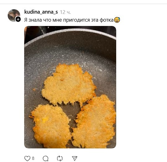 Второй вариант этого теста: увидеть в ленте драники и пойти чистить картошку, чтобы немедленно начать их жарить.