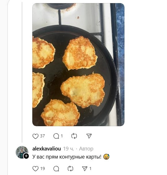 Впрочем, оказалось, что это не первый подобный драник в истории. Испечь картофельный оладушек в форме родины – это такой тест на белоруса.