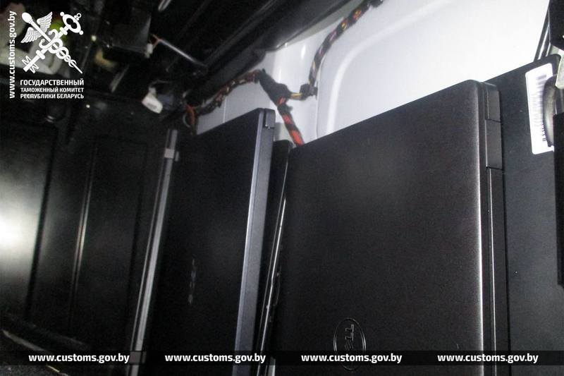 Но их удалось установить благодаря применению инспекционно-досмотрового комплекса. При дальнейшем досмотре и демонтаже технологических ниш таможенники извлекли 10 ноутбуков.
