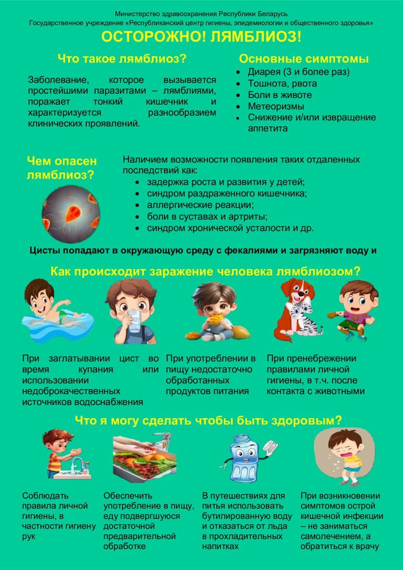 Сотрудники лаборатории иммунологии и клеточной биотехнологии НИИ гигиены, токсикологии, эпидемиологии, вирусологии и микробиологии РЦГЭиОЗ издали памятку, где напомнили о коварном заболевании, коим является лямблиоз. Выложили ее в канале республиканского центра гигиены, эпидемиологии и общественного здоровья.
