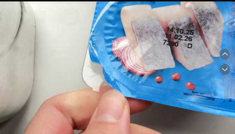 Одной сгущенкой дело не ограничилось. Анна выложила в сеть еще один ролик с претензиями к качеству продуктовой упаковки — досталось сельди от «Санта Бремор».