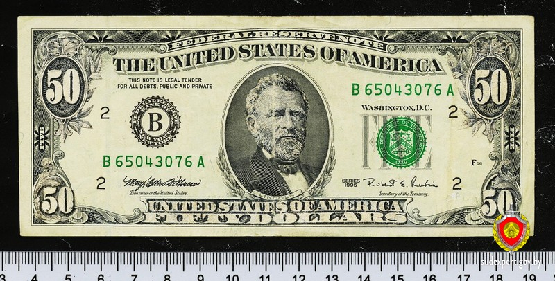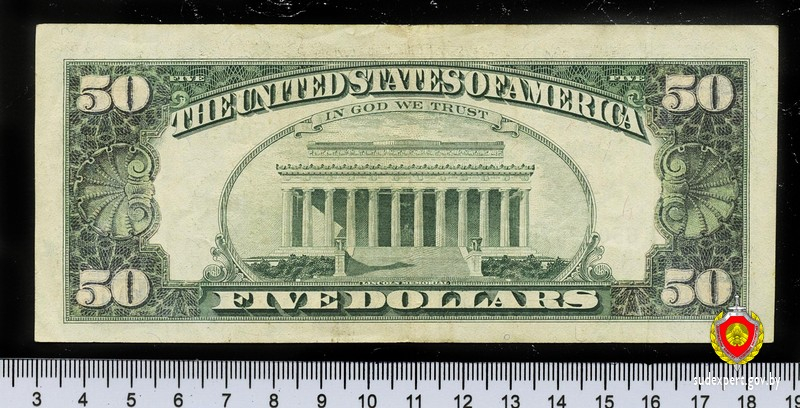 Судебный эксперт выяснил, что первоначально это был денежный билет номиналом 5 долларов, однако его подкорректировали – в отдельные места вклеили фрагменты бумаги с изображениями чисел, текста и лица мужского пола, соответствующие номиналу 50 долларов. Все наклейки были выполнены способом электрофотографической печати. Таким образом, номинал купюры увеличился в 10 раз.