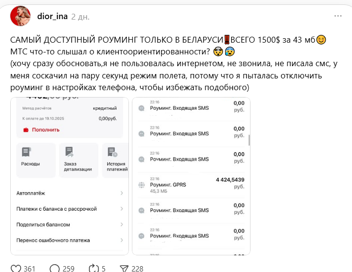 По словам Яны, она не звонила, не писала SMS и не выходила в сеть — на время путешествия устройство находилось в полетном режиме. Функция была выключена всего на пару секунд, пока пользовательница разбиралась в настройках, как отключить злополучный роуминг.