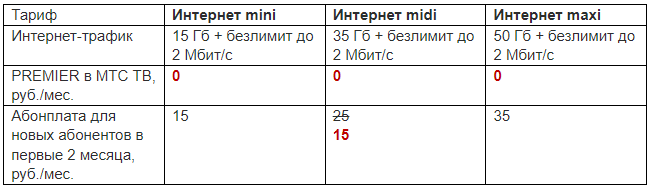 Тарифный план «Интернет midi» включает 35 Гб трафика на максимальной скорости и безлимитный доступ в интернет на скорости до 2 Мбит/с. Дополнительно в подарок абоненты получают бесплатный доступ к онлайн-кинотеатру PREMIER в МТС ТВ.