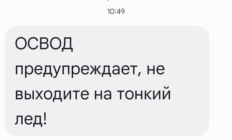 Белорусы получили от спасателей важное смс-оповещение. Так, ОСВОД предупреждает граждан, что нельзя выходить на тонкий лед.