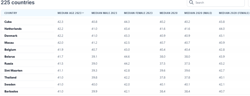 За три года медианный возраст населения страны увеличился на три года, пишет Thinktanks со ссылкой на данные исследовательского ресурса worldpopulationreview.com. И этот процесс продолжается.