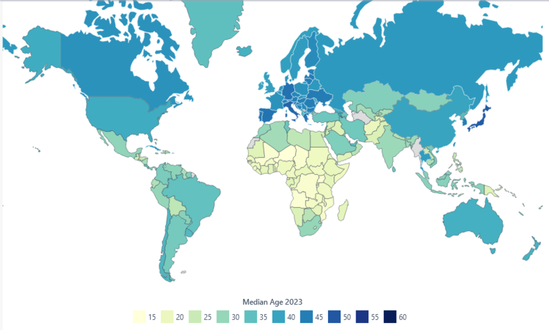 Медианный возраст - это возраст, в котором половина населения старше, а половина моложе указанной планки. Например, по оценкам CIA World Factbook, глобальный медианный возраст в 2020 году составил 31,0 года, что означает, что 50% мирового населения были моложе 31 года, а 50% — старше. Однако медианный возраст по странам значительно различается по всему миру и зависит от ряда факторов, таких как уровень рождаемости, социальное и экономическое развитие и средняя продолжительность жизни в отдельных странах.