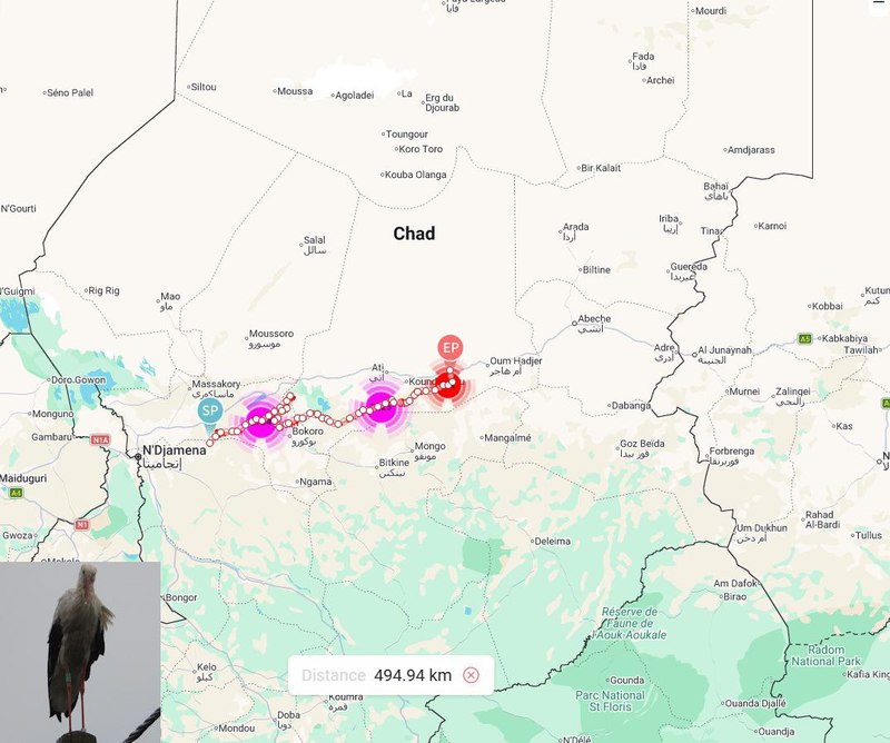 Польские орнитологи сообщили, что белый аист Второй с передатчиком двинулся с места зимовки у столицы Чада Нджамены. Он держит путь на север в Европу — передает телеграм-канал «Дзікая прырода побач».