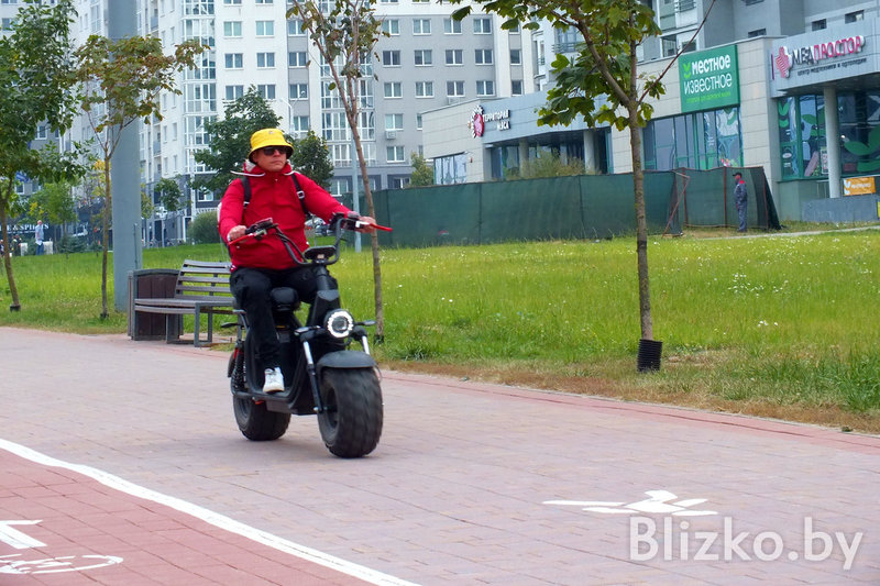 Напомним, что по нашим ПДД велодорожка — это не обязательно обособленная дорога, но и выделенный конструктивно или с помощью линий горизонтальной дорожной разметки элемент дороги, предназначенные для движения велосипедистов и пешеходов с СПМ. То есть, тротуар, на котором выполнена разметка с изображением велосипедов, является велодорожкой. Если вы увидите большой самокатище не на велодорожке, а просто на тротуаре, — это нарушение ПДД.