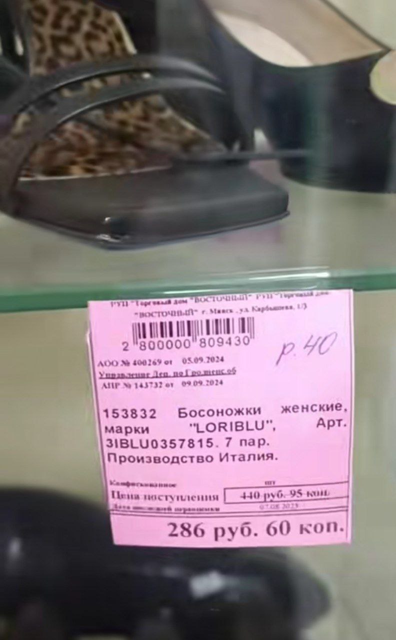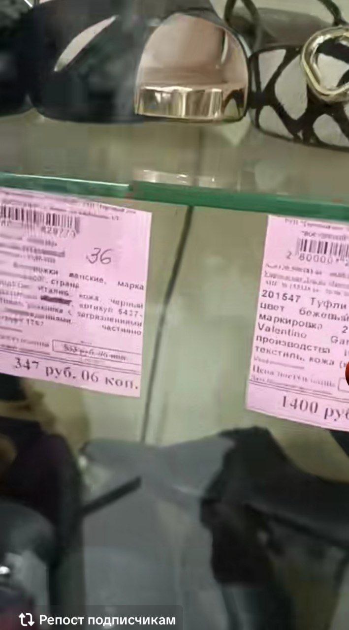 Женские шлепанцы Dolce&Gabbana стоят 437. Были и модели, которые продаются более, чем за 1000 рублей, но определить бренд по видео у нашего журналиста не получилось. Самые дорогие туфли Valentino за 1400 рублей.