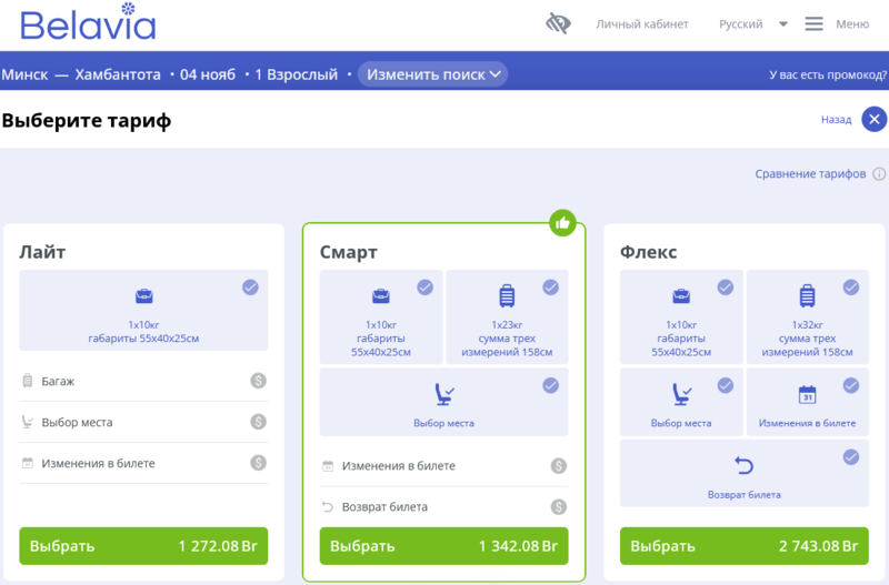 Компания отмечает, что билет стоит от 1.286 рублей в одну сторону и от 2.528 рублей туда-обратно. Но Blizko.by смог отыскать билеты на сайте даже чуточку дешевле: за 1.272 рубля в одну сторону.