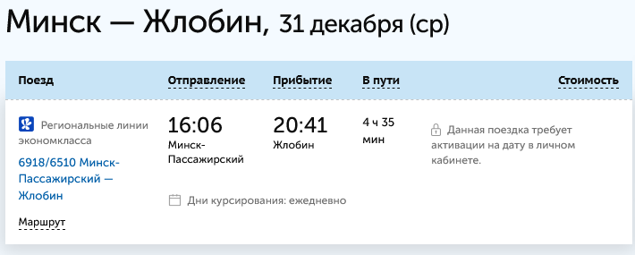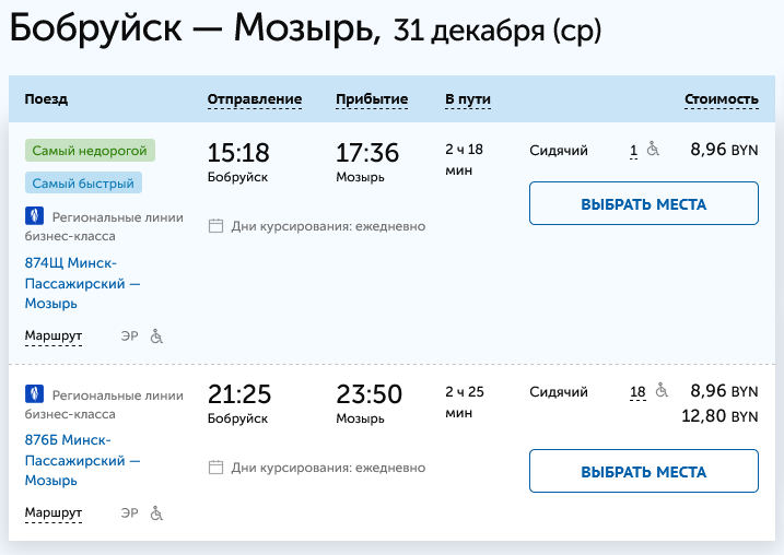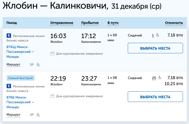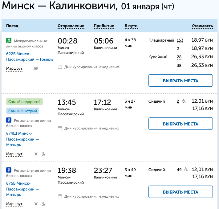 Что интересно: на 1 января билетов из Минска и до Калинковичей, и до Мозыря полно.