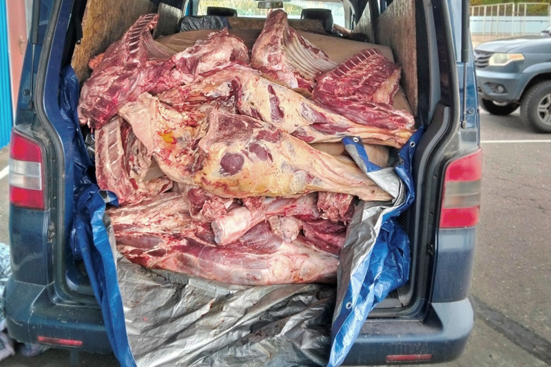 Специалисты ведомства вместе с таможенниками выявили перевозку со стороны Беларуси мяса в четвертинах (предположительно, говядина) в объезд официальных ветеринарных контрольных постов.