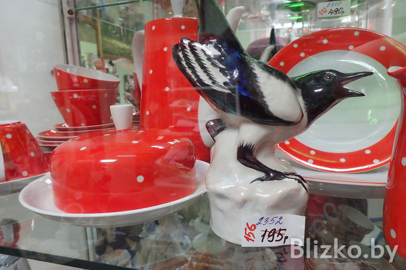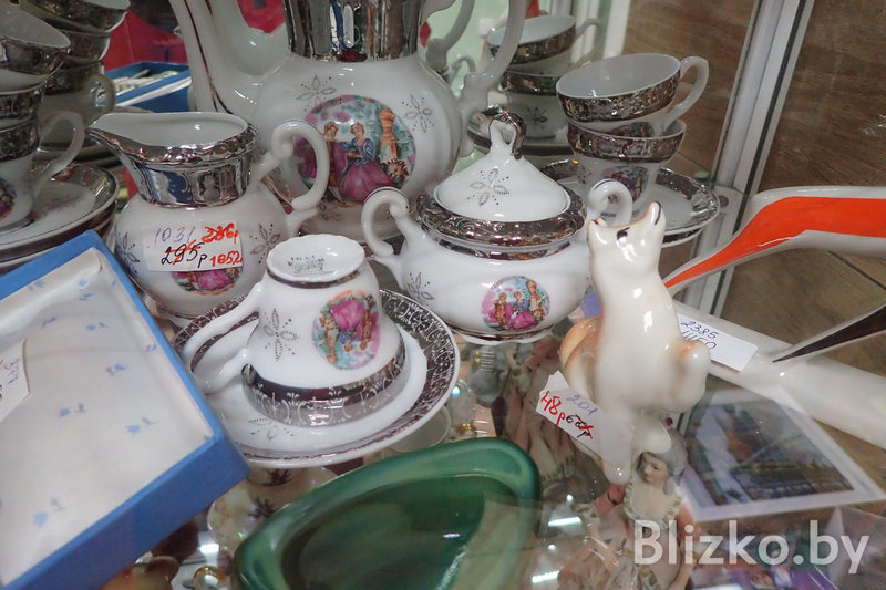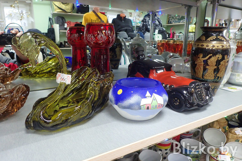 По каким ценам распродаются все эти вещи? Вот несколько примеров. Советские подстаканники без вензелей можно взять по 10 рублей. Фарфоровые тарелки из Добруша и других городов — по рублю, по два, по три и выше. Фарфоровые же статуэтки от 90 до 350 рублей за большие и от 40 рублей за маленькие. Одежду можно присмотреть за 30-50-100 рублей, куртки — до 200 рублей, мужскую обувь — от 100, женская летняя — за 20-40 рублей.