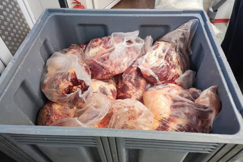 Более того, в холодильных камерах и производственном помещении проверяющие нашли около 1 тонны обезличенной мясной продукции и сырья для ее производства.
