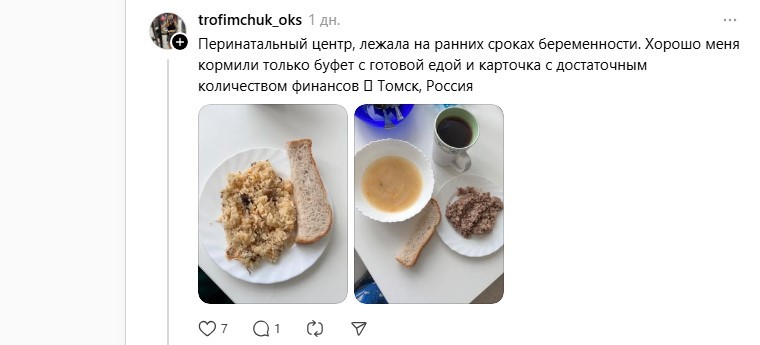 «Рожала в Бресте, все, что давали, было очень вкусным, особенно белый хлеб, это вообще отвал башки, домой несколько кусков забрала, ела и понимала, что больше такого не поем», — написала одна из пользовательниц.