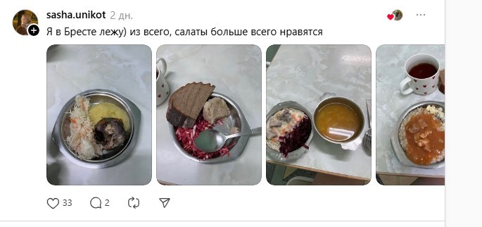 В основном, это отзывы из белорусских больниц и роддомов. Но попадаются и комменты из стран-соседей, России и Казахстана. Эти обычно написаны в печально-завистливом ключе: «Ого, почему у вас так вкусно. У нас такого нет». В сопровождении грустных фото прозрачной похлебки и одинокой каши без мяса.