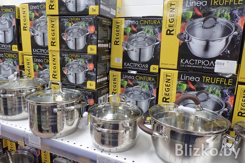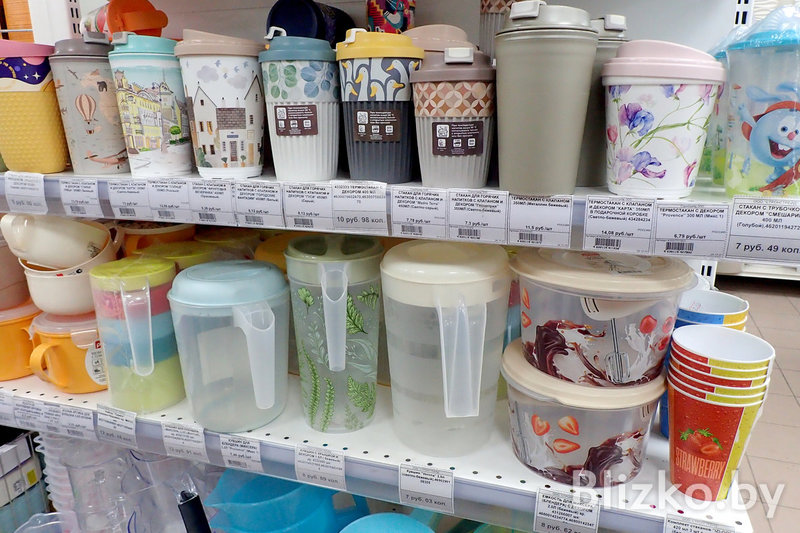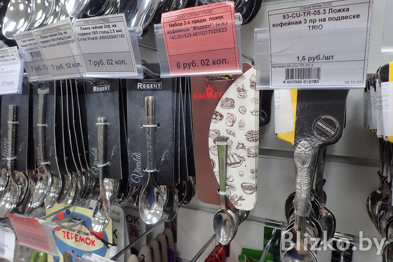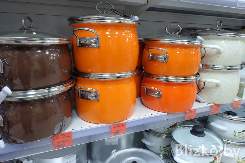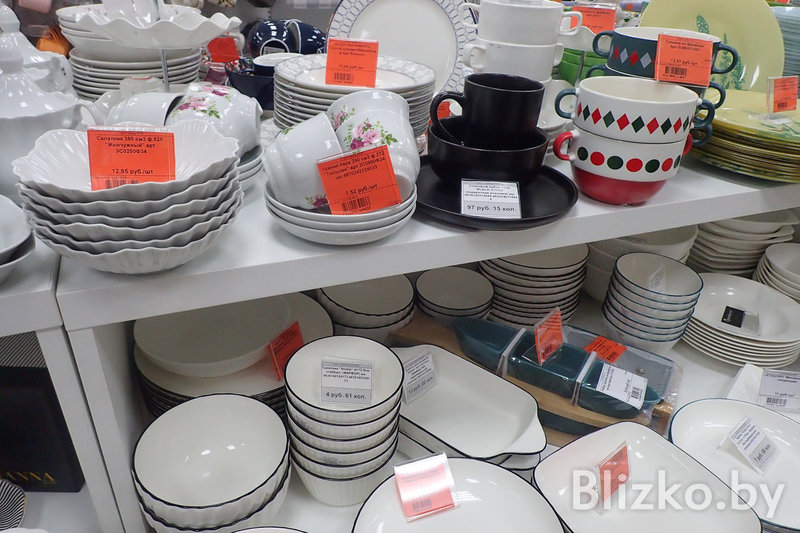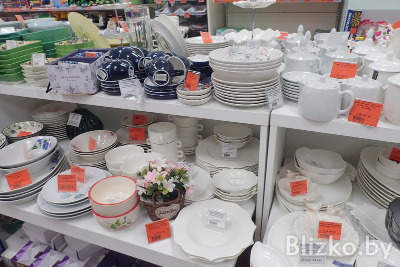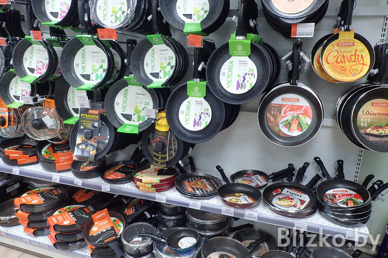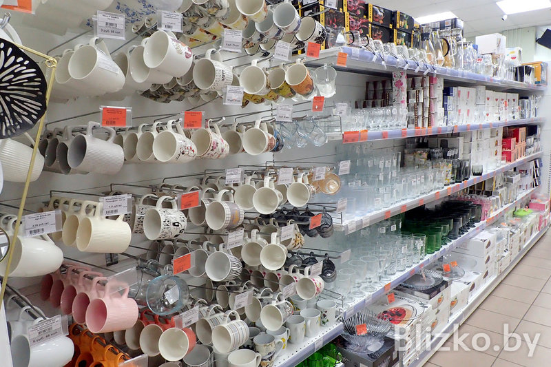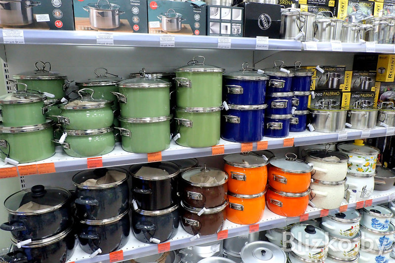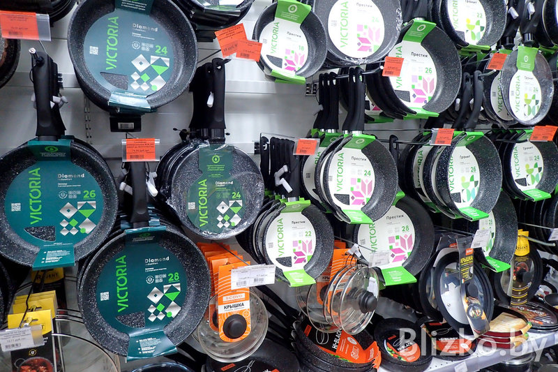Набор товаров во всех точках «Красавиты» примерно одинаковый, завмаги сами формируют список того, что появится на полках. Основной упор — на посуду для приготовления еды и сервировки.