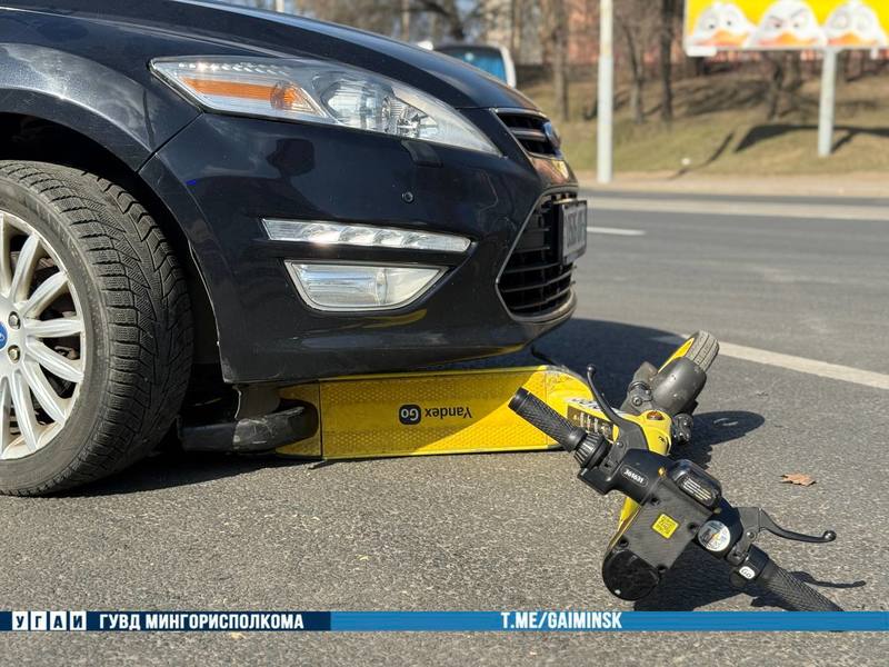В Минске девушка на электросамокате не предоставила преимущество автомобилю и попала под колеса. Об этом сообщили в столичной ГАИ.