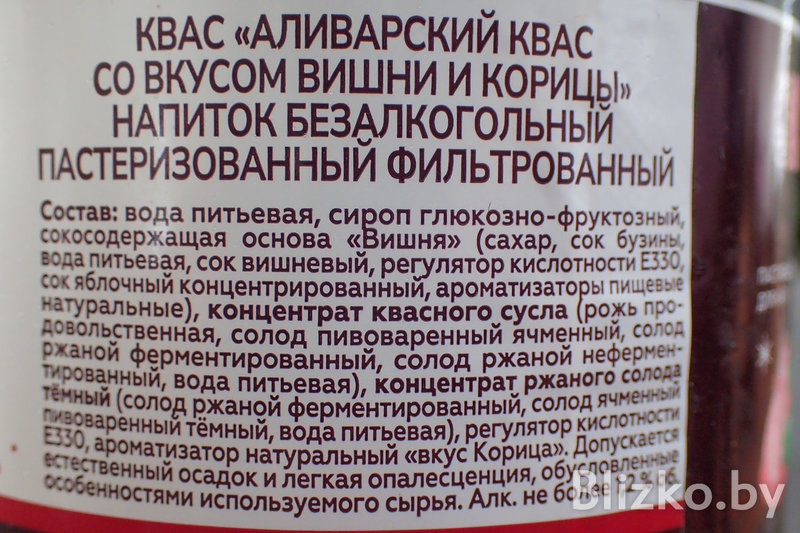 Чем может похвастаться новинка от пивзавода «Аліварыя»? За вкус вишни отвечают сок бузины, яблочный сок и вишневый сок, а за вкус корицы — ароматизатор натуральный «вкус корицы». Традиционно для квасов этой марки в состав входит не только ржаной солод, но и солод ячменный пивоваренный.