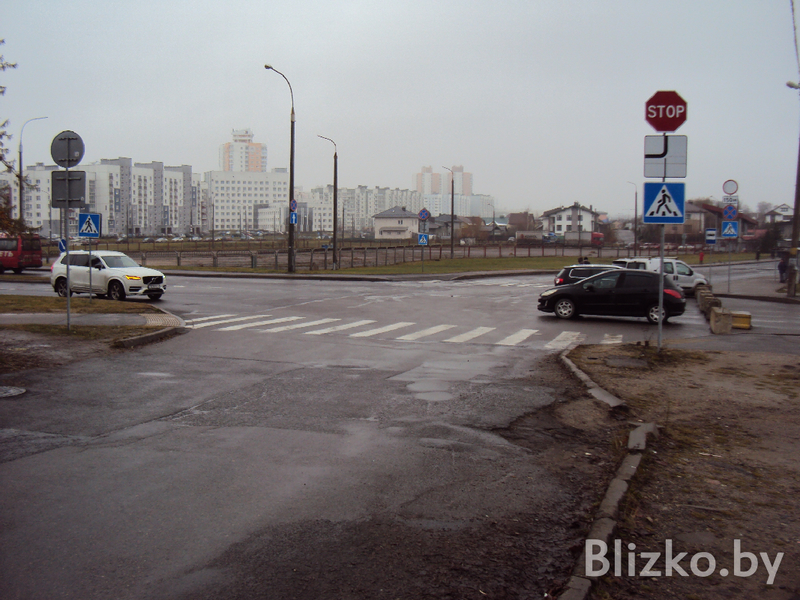 Участок «законсервированной» улицы начинается у здания магазина «Светофор» по адресу улица Михася Лынькова, 123Б. Здесь дорога действительно выглядит очень спокойной. Ни машин, ни велосипедистов, даже пешеходы — большая редкость. Возможно, все дело в холодном сезоне или в том, что на улице был выходной день, поэтому местные жители сидели по домам.
