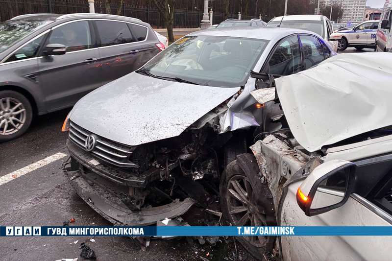 «Сегодня днем 45-летний водитель автомобиля BMW, двигаясь по проспекту Независимости, на перекрестке с улицей Волгоградской совершил столкновение с двумя автомобилями. В дальнейшем водитель выехал за пределы проезжей части с целью их объезда и продолжил движение по проспекту Независимости, после чего на перекрестке с улицей Толбухина совершил столкновение еще с 6 автомобилями. Причины и обстоятельства произошедшего устанавливаются. Предварительно, в результате ДТП никто не пострадал. Автомобили получили механические повреждения».