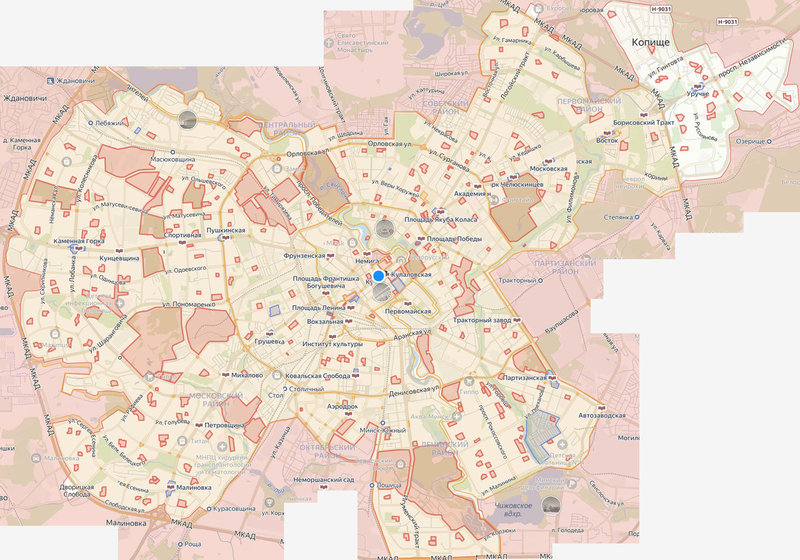 Нас больше интересуют зоны запретов и ограничений, которые действуют для всех операторов шеринговых самокатов в Минске.