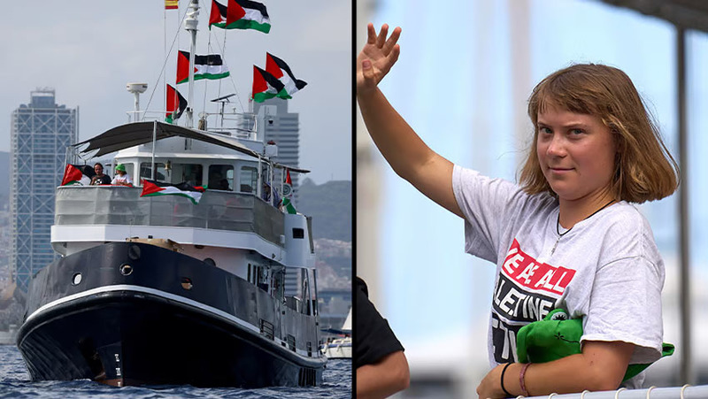 Грету, которая предпринимает вторую попытку добраться до сектора Газа, сопровождают около 350 пропалестинских активистов, плывущих с гуманитарной помощью, чтобы доставить её палестинцам.