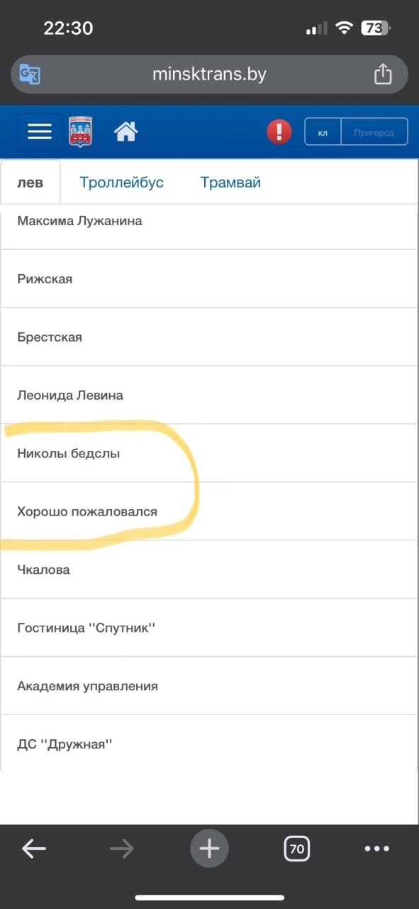В «Минсктрансе» прокомментировали, что виртуальное табло работает корректно, а причина неправильных названий могла быть в том, что в переводчике браузера некорректно выставлен язык.