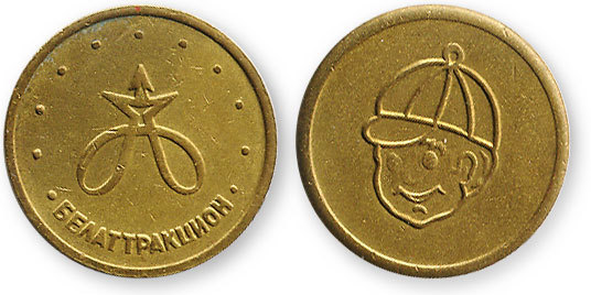 В 1974 году была основана организация, которая впоследствии получила название «Белаттракцион». Она поставляла игровые автоматы и игровой и спортивный инвентарь (например, биллиардные столы). А ее игровые автоматы в начале 90-х разошлись по всей стране, причем принимали они однотипные жетоны с логотипом, в котором можно рассмотреть и стрелу, и звезду, и знак бесконечности. Эти жетоны продавались в залах игровых автоматах взамен 15-копеечных монет, оборот которых было сложно контролировать. На одном из форумов коллекционеров нашлось такое сообщение: «Этот логотип придумал в 1992-93 году мой однокурсник по минскому худучилищу имени Глебова — Виктор Леонидович Левчук 1968 года рождения». Компания ушла в ликвидацию в 1997-м и была окончательно исключена из реестров в 2011-м.