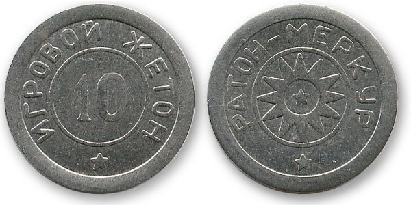 А еще существовала такая совместная белорусско-немецкая компания «Ратон-Меркур», которое занималось аналогичной деятельностью и штамповала свои собственные жетоны. Известны жетоны с номиналом 10 единиц. Фирма была зарегистрирована в Гомеле (там находится свободная экономическая зона «Ратон») и просуществовала с 1992 по 2007 годы.