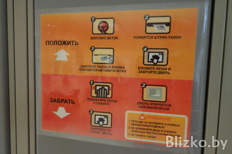 Платите 3 рубля — получаете жетон. Бросаете жетон в прорезь на панели «шкафа» — появится чек со штрих-кодом. Берете чек в руки — и в этот момент автоматически откроется дверка ячейки. Положите багаж в ячейку, закройте дверцу и идите по своим делам. Чек со штрих-кодом важно не терять: при его сканировании дверца откроется. Хранить вещи можно не более 3 суток.