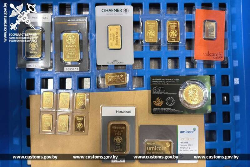 Гражданка Германии пыталась ввезти в Беларусь 15 слитков золота и золотую монету без декларирования. Об этом сообщили в Государственном таможенном комитете.