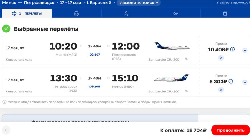 - Вылет из Петрозаводска в 13:30, прибытие в Минск в 15:10.