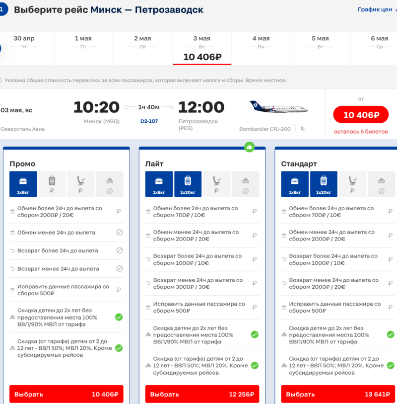 - Вылет из Минска в 10:20, прибытие в Петрозаводск в 12:00.