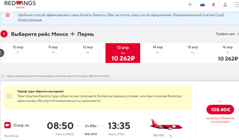 Российская авиакомпания Red Wings открывает новое международное направление по маршруту Пермь – Минск. Полеты стартуют 9 апреля и будут выполняться по понедельникам и четвергам до конца сентября.