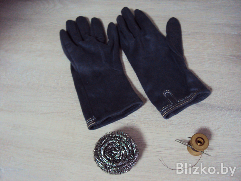 Признаемся честно, этот лайфхак автор подсмотрела в мультсериале «Фиксики». Дело в том, что сенсоры экрана работают благодаря электрическому току, а ткань ток не проводит. И чтобы экран чувствовал касание, необходимо вшить в пальцы перчаток металлизированные нити. Только декоративные нити из люрекса не подойдут, а нить чистого металла найти сложно. Здесь на помощь и придет скребок. Из него необходимо вытащить нить металла, вдеть в иголку и сделать буквально несколько стежков на пальцах, которые вы чаще всего используете, проводя время с телефоном. Можно пришить ко всем пальцам, по желанию, журналист выбрала большой и указательный.