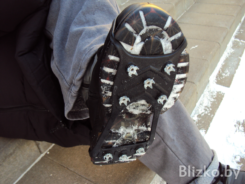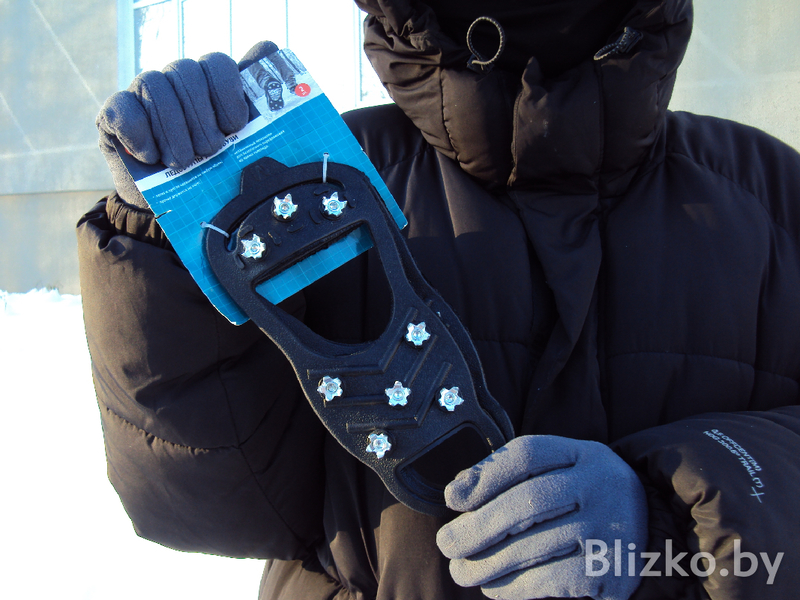 Речь идет о ледоступах. В интернете продают множество различных вариантов, но лучше всего брать с шипами или перепонками. В таких моделях можно ходить не только по обледеневшим дорогам, но и по скользкому снегу, не боясь случайного падения. Только есть один момент — шипы имеют свойство вылетать из прорезиненной основы и деформироваться, если вы ходите в них по бетонной поверхности или ничем не покрытому асфальту, поэтому на всякий случай лучше запастись дополнительными парами. Лучше всего их брать в магазинах типа FixPrice: там и цены невысокие (от 6 рублей за пару) и выбросить испорченную пару не жалко.