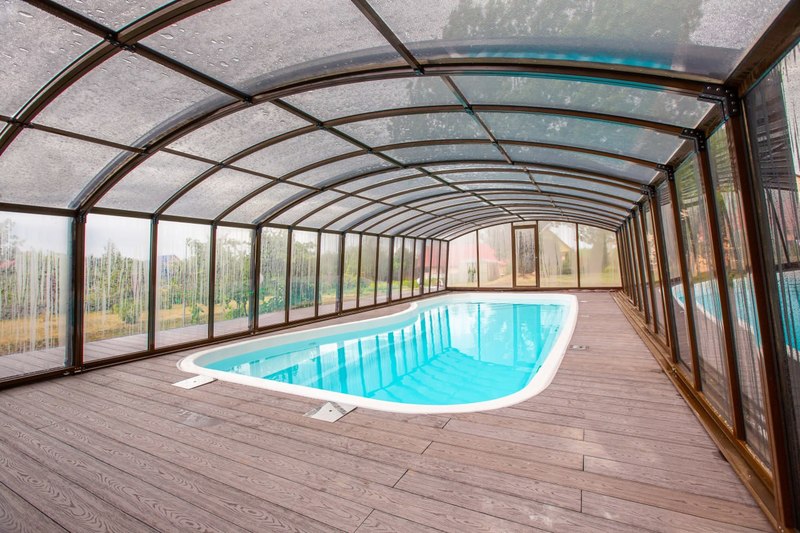 Если раньше павильоны чаще всего делали стационарными, вроде парника над чашей бассейна, то сегодня все больше владельцев бассейнов выбирают раздвижные (телескопические) павильоны, состоящие из нескольких секций, которые легко сдвигаются по рельсам. Преимущества очевидны: можно полностью открыть бассейн в жаркий день или закрыть в непогоду.