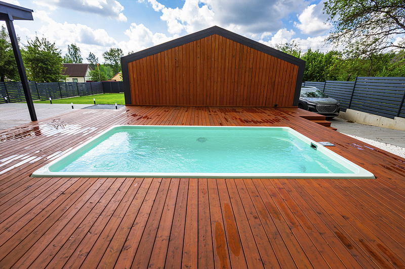 Оформление зоны вокруг бассейна играет важную роль в создании комфортной и привлекательной атмосферы. В этом сезоне главной новинкой стало новое покрытие для террас – доски из минерально-полимерного композита (МПК).