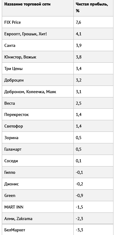 Рейтинг торговых сетей по размеру чистой прибыли за 2024 год